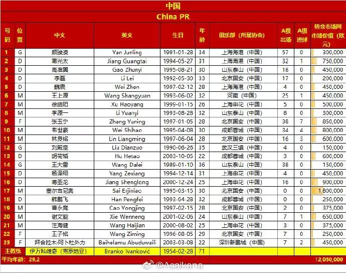 国足出战沙特圆善23东谈主大名单及号码如下: